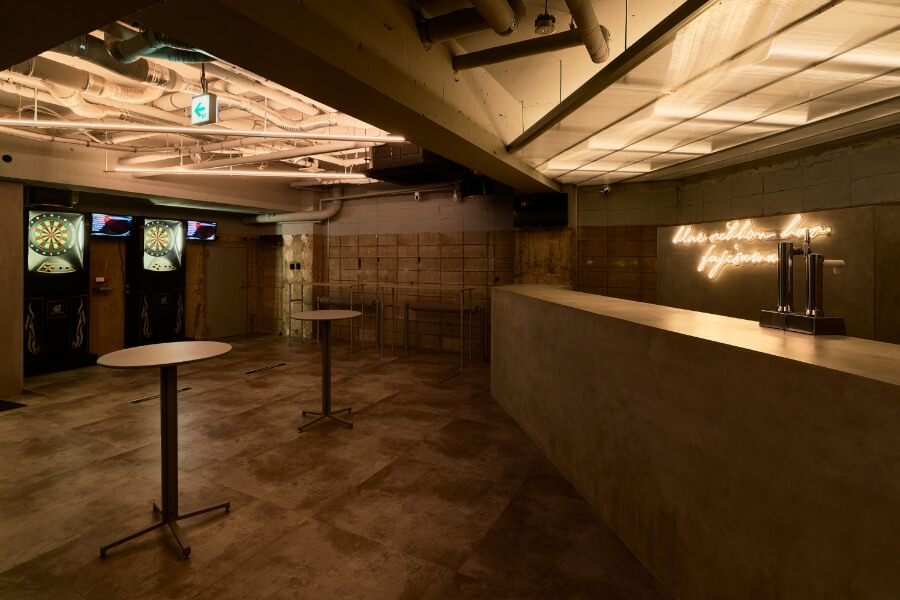 カラオケ、ダーツ、シーシャ、DJ、スポーツ観戦もできる映像スクリーンあり